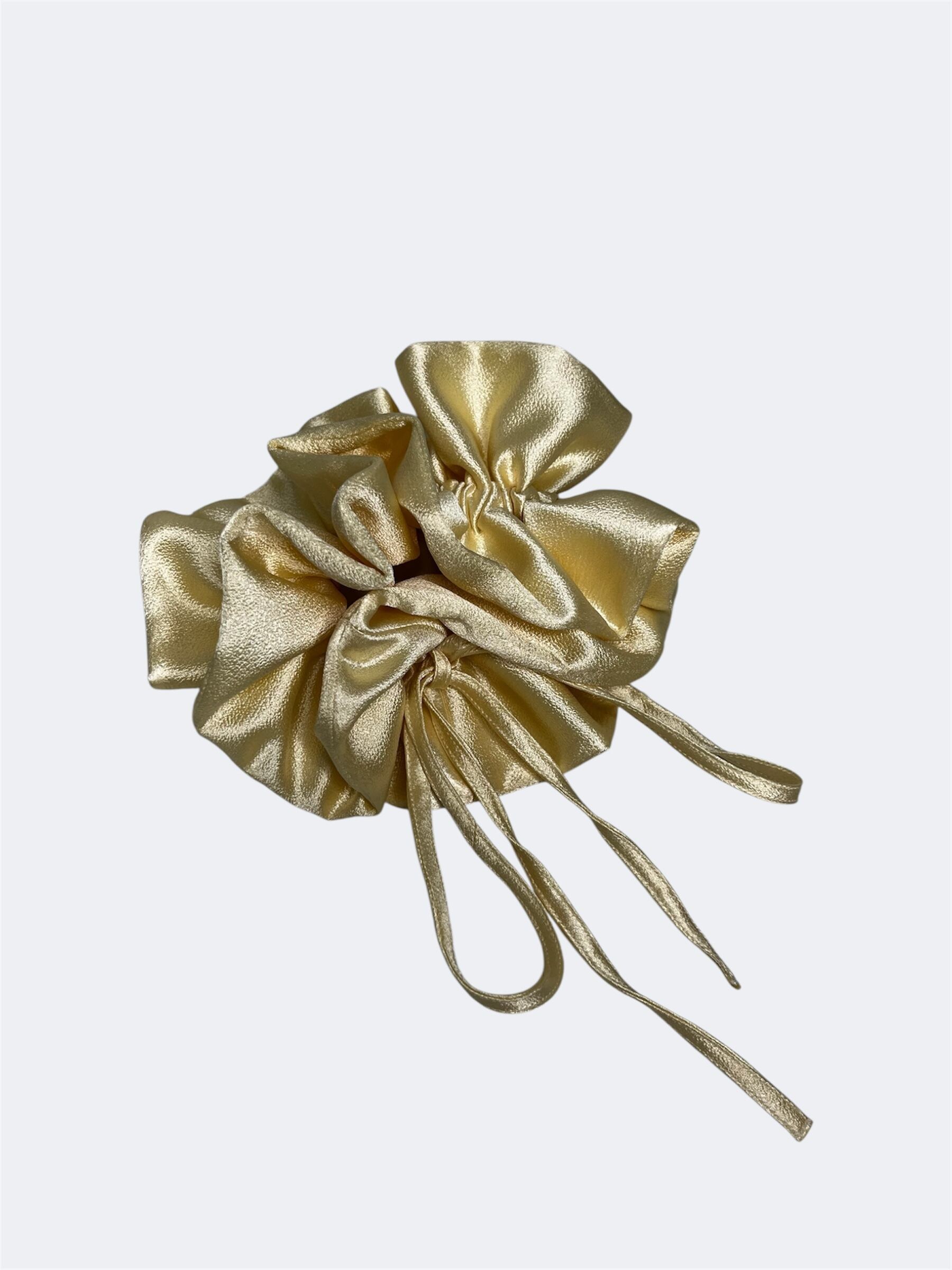 シンプルな色合いで大ぶりで存在感のあるサテン素材の大きめシュシュ