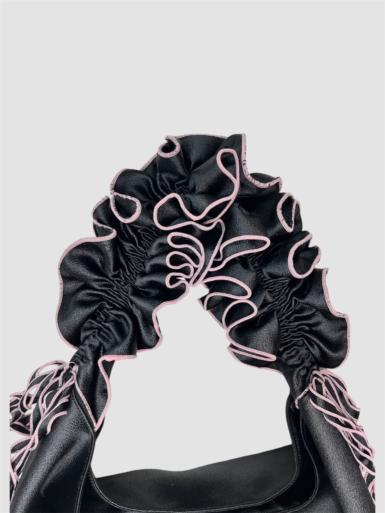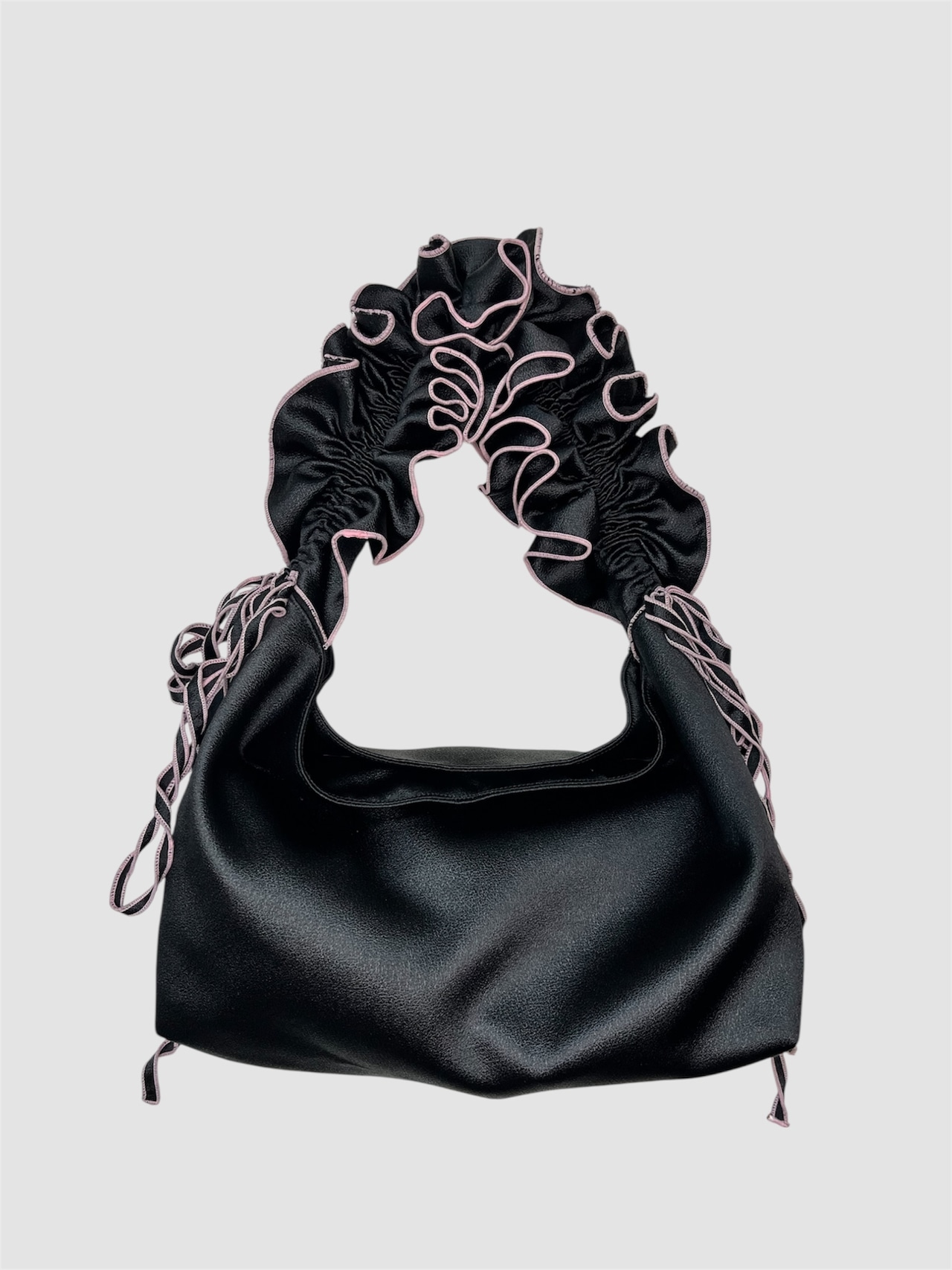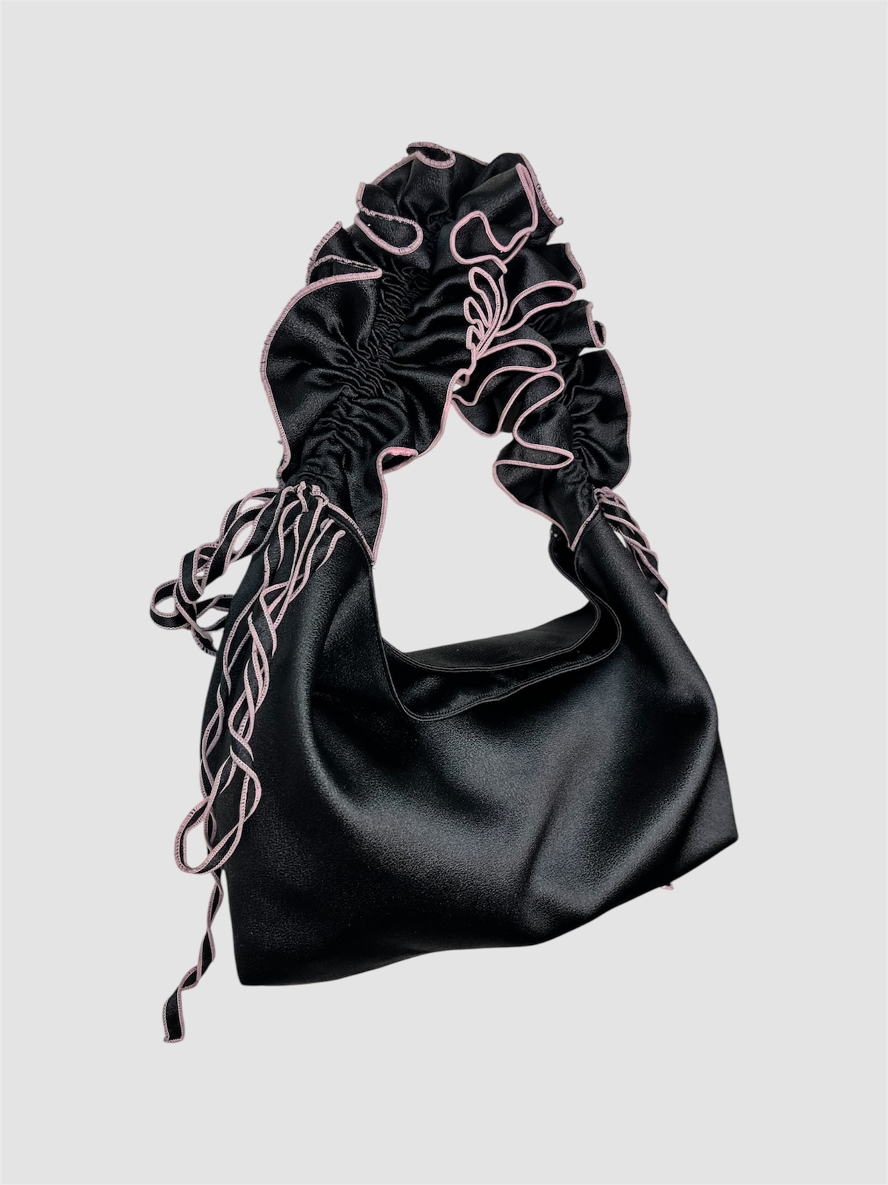 ギャザーとリボンのデザインが存在感抜群のアイテムなので、シンプルなコーディネートのアクセントとしてもキレイめなシーンにも◎