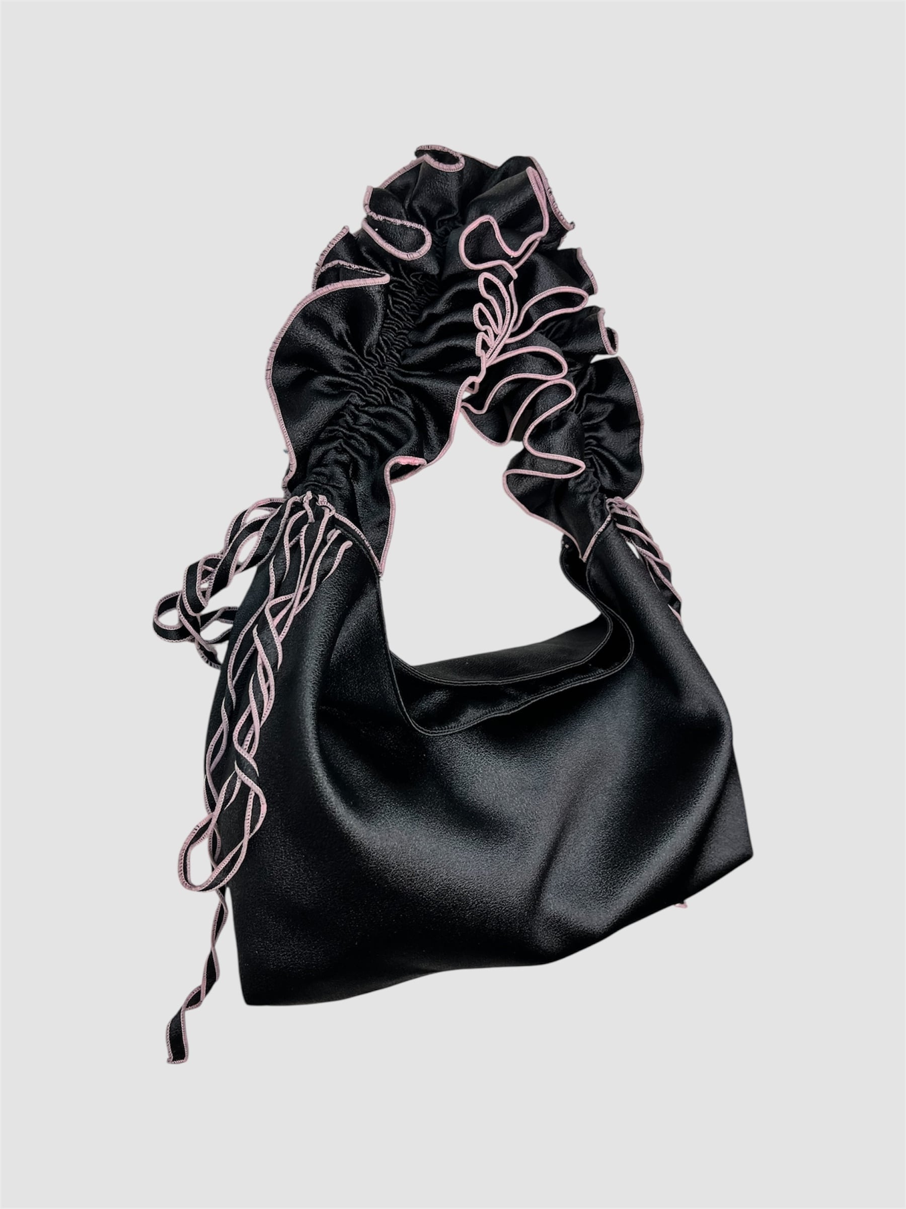 black×pink frilly bag